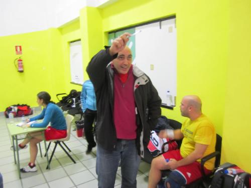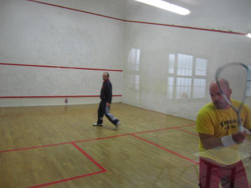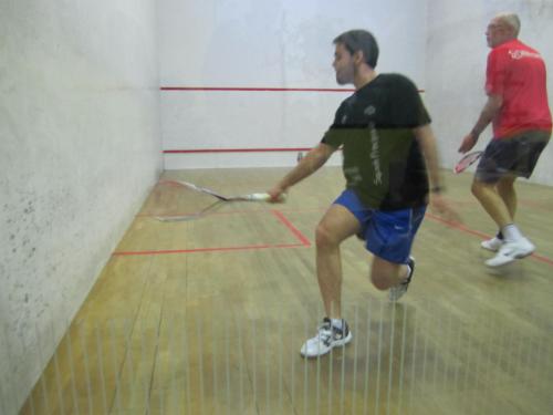 En la mañana del sábado partidazo entre Alfonso Moral y Pablo Zurro. Que Pablo esta en muy fuerte en la pista últimamente, no es ningún secreto, pero Alfonso tiene mucho peligro con su “toque”, así que el espectáculo estaba asegurado. Comenzaron jugando tranquilos, bola lenta, muchas paralelas altas, sin forzar, pero Pablo castigó duramente a Moral fisicamente, a base de boast a dos paredes desde atrás, forzando a Alfonso una y otra vez a hacer diagonales, y luego globos cruzados. Así se puso 2-0 Pablo, pero Alfonso, que debe tomar pastillas de colores, porque parece que está a punto de desmayarse, pero no flaquea, remontó los dos juegos en contra aguantando la bola con buenas paralelas, dejadas, y esos globos que sólo sabe hacer él. En el quinto, tuvieron los dos bola de partido, hubo algún desacuerdo arbitral crítico, pero venció Pablo por un ajustado 13-11, enhorabuena a los dos.