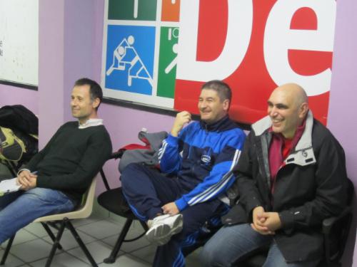 El buen ambiente siempre reina en Corvera. De izquierda a derecha: Alfonso Moral, Luis Royo y Juan Amengual, Presidente de la Federación de Squash del Principado de Asturias.